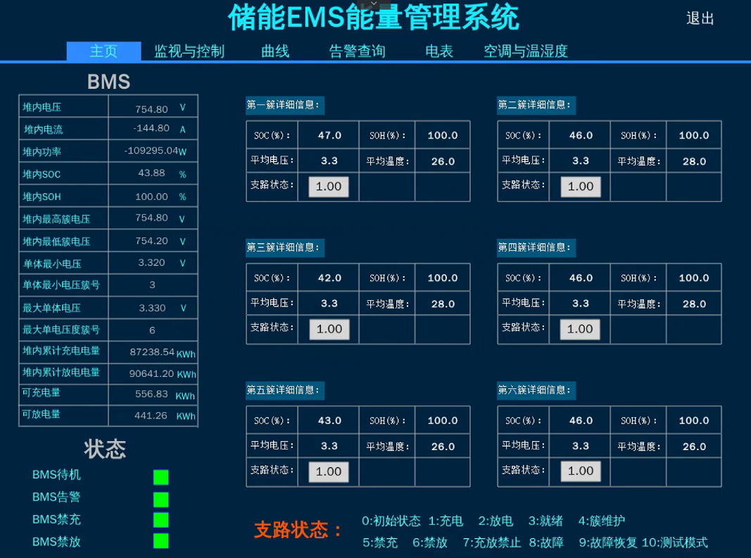 儲(chǔ)能EMS可以實(shí)時(shí)采集BMS、PCS、消防、溫濕度、空調(diào)等設(shè)備的數(shù)據(jù)信息,對(duì)于風(fēng)光儲(chǔ)電站可同時(shí)采集光伏、風(fēng)電相關(guān)設(shè)備信息,通過這些數(shù)據(jù)可以實(shí)時(shí)監(jiān)控電站運(yùn)行狀態(tài)及告警信息便于及時(shí)進(jìn)行消缺,可支持?jǐn)?shù)據(jù)轉(zhuǎn)出至集控中心,便于遠(yuǎn)程維護(hù)及數(shù)據(jù)分析。